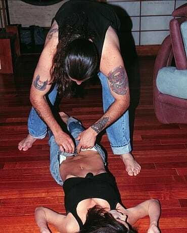 He straddled her and began to tie her hands behind her back. This would leave plenty of room to grope her breasts. She would now be in a very vulnerable position. Unable to use her hands for protection, unable to prevent what was about to happen, she was at his mercy.