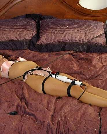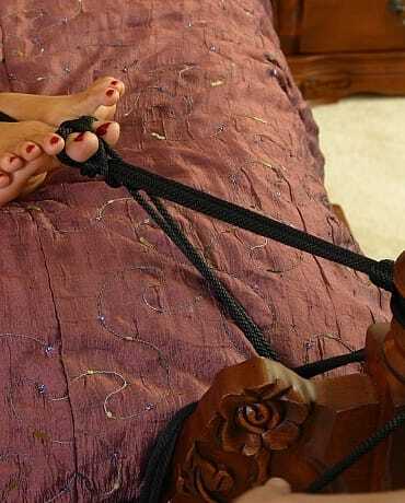Sasha Monet has some amazing sexual energy. She makes everything look and feel great. Trussed up in this cute lingerie set and spread across the bed makes it easy I must admit. Add in some of Jim's bondage and a vibrator and **phew**! The way she moves her pelvis. Her bare belly exposed for all to admire. He even included her big toes in his bondage. How exceptional! Toe bondage is one of the most effect ways to keep a gal under control *snicker* This is a great struggle video. Check it out!